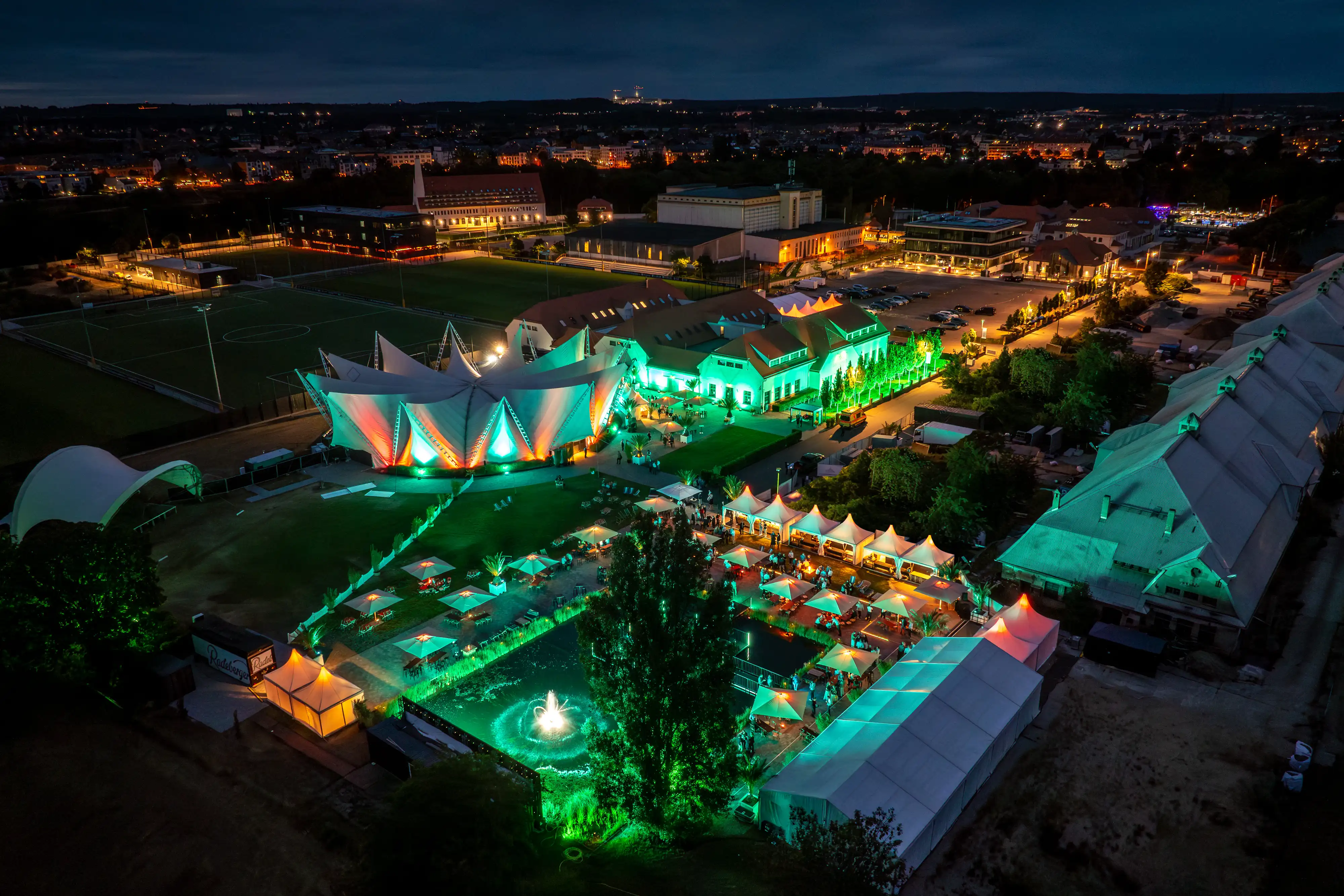 Das Areal überzeugt durch seine ideale Lage – nur fünf Minuten vom Stadtzentrum Dresden entfernt und mit einer Straßenbahnanbindung im 10-Minuten-Takt. Vor Ort stehen 200 Parkplätze zur Verfügung, erweiterbar auf mehrere Tausend. Zahlreiche Hotels in der Nähe bieten komfortable Unterkünfte. Die Eventlocation ist optimal ausgestattet: mit effizienter Eventlogistik, 1 Gbit-Internet, großzügigen Sanitäranlagen, Backstage- und Orga-Räumen sowie befahrbaren Bodenflächen. Hochwertige Technik für Beleuchtung, Sound, Show und moderne Cateringbereiche sorgen für perfekte Veranstaltungsbedingungen. Das barrierefreie Gelände ist flexibel und vielseitig nutzbar.